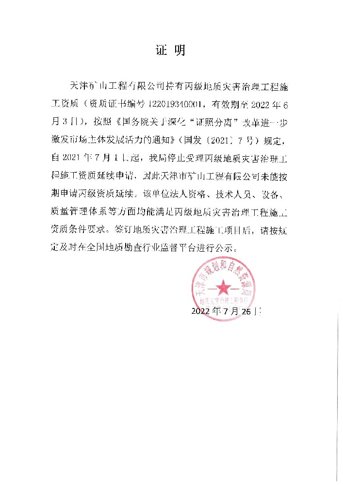 地質(zhì)災(zāi)害治理工程施工資質(zhì)證書